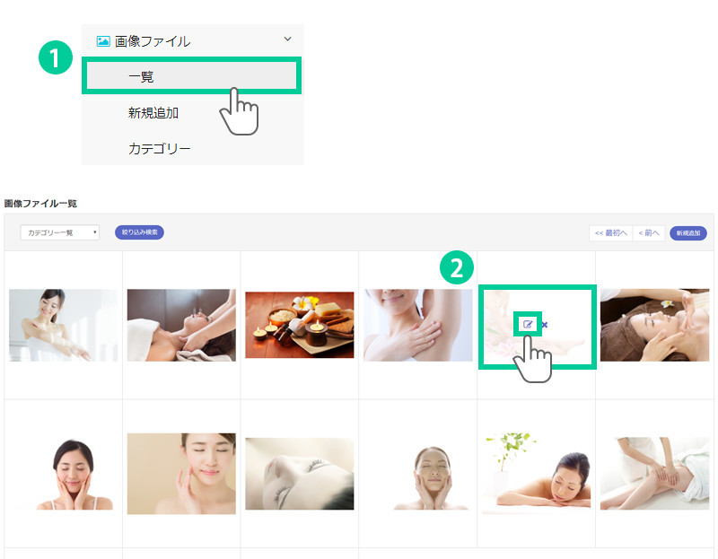 1.メニュー「画像ファイル>一覧」をクリックします。