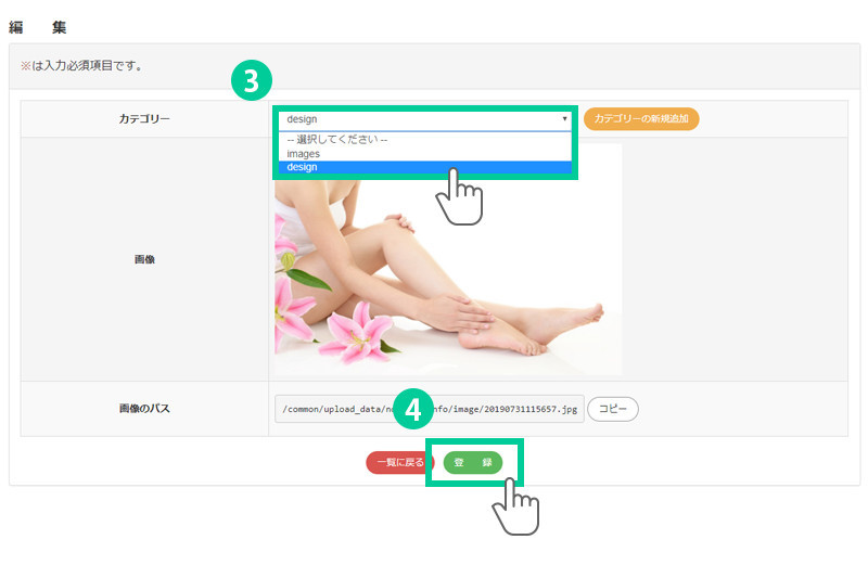 画像をカテゴリー別に分けます。