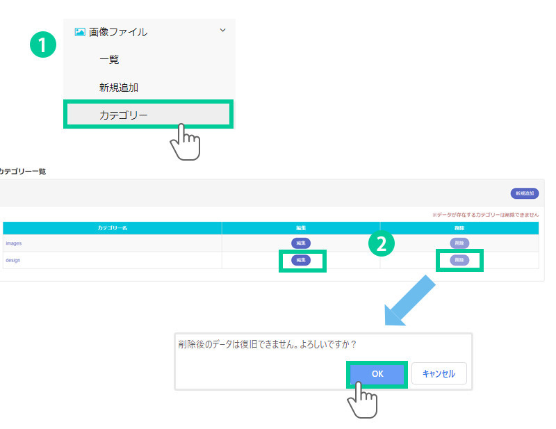 2.編集・削除をするメニューの右側のボタンをクリックします。 ※削除するとデータの復旧はできません。