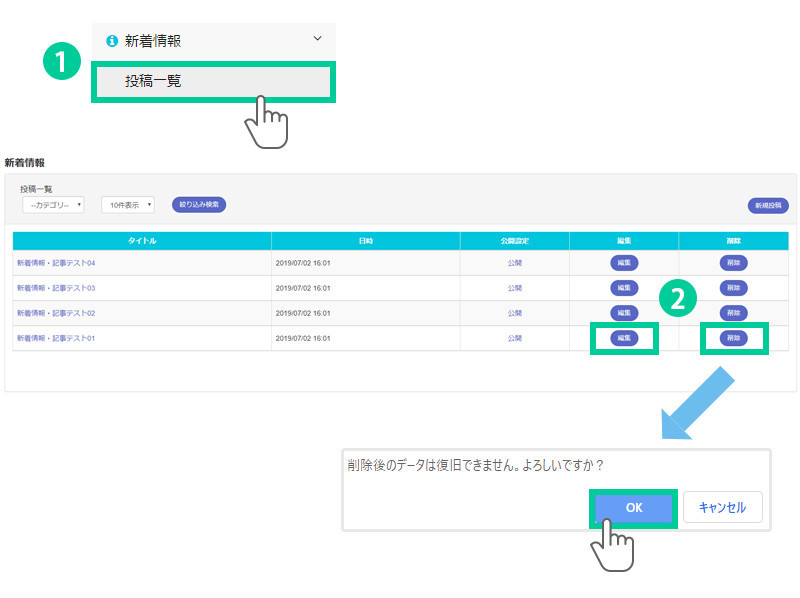 新着情報記事の編集・削除
