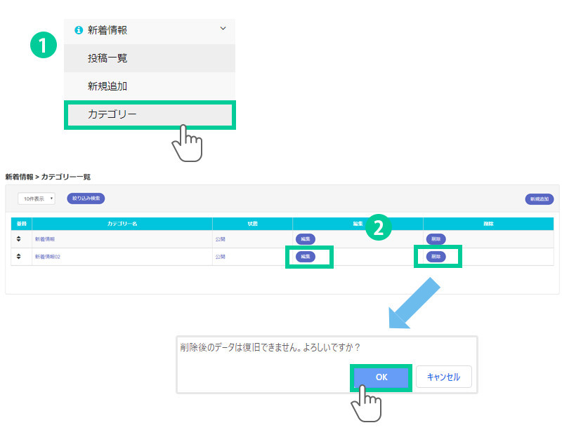 新着情報カテゴリーを編集・削除する