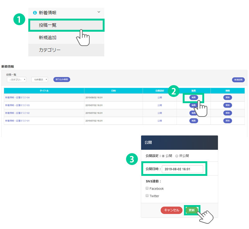 3.公開日時を編集して更新をします。