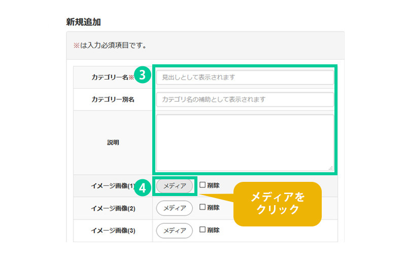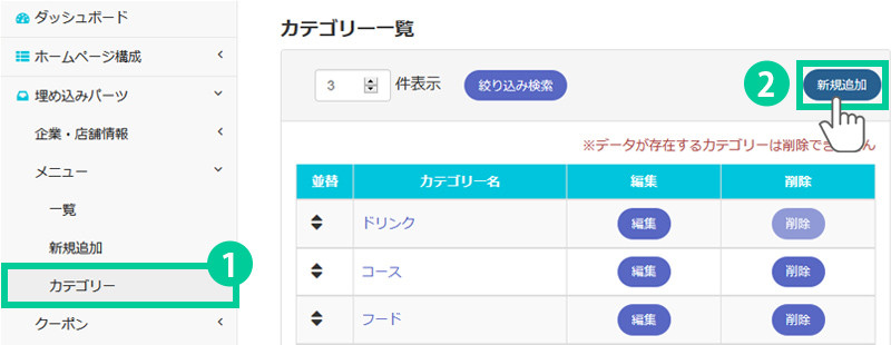 メニューのカテゴリーを追加します。