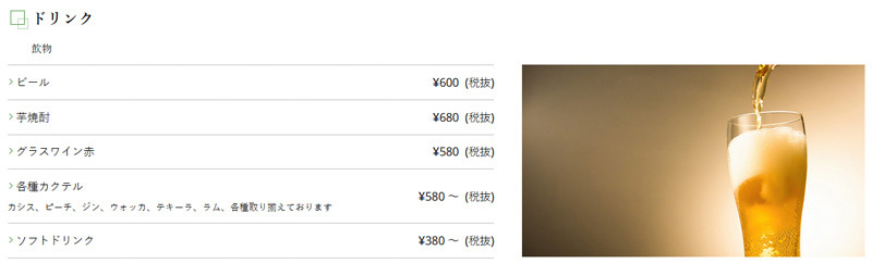 カテゴリーに登録したイメージ画像はメニュー表の上や横に表示されます。 <反映イメージ>