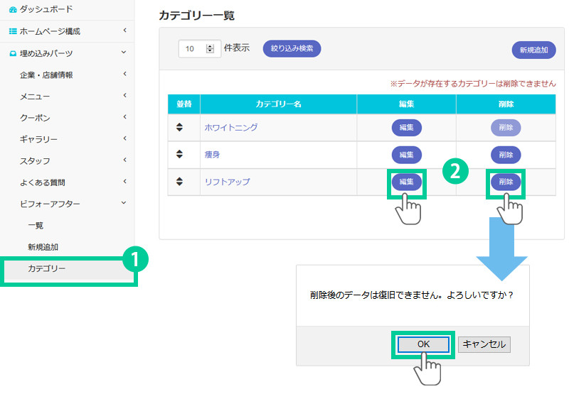 ビフォーアフターのカテゴリーを編集・削除する