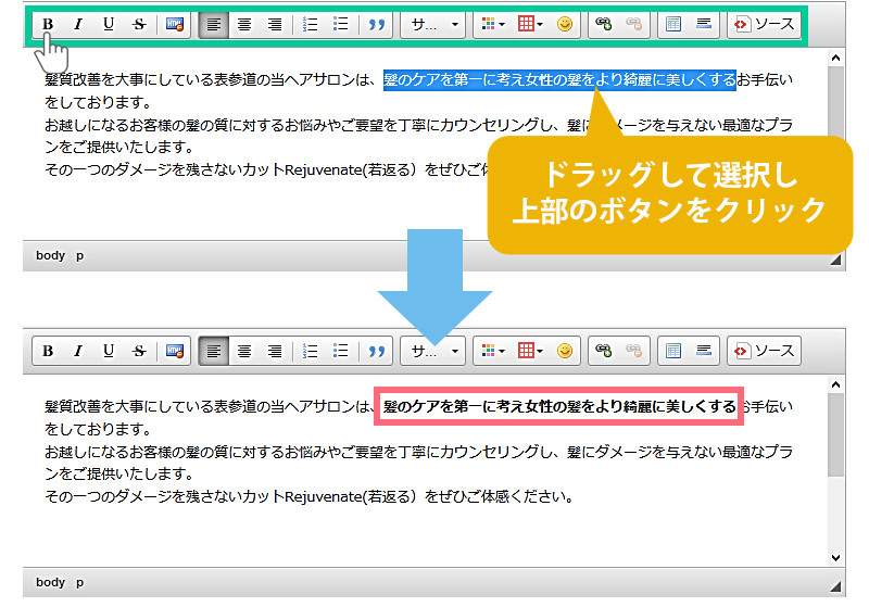 → 太字(文字を太くします)