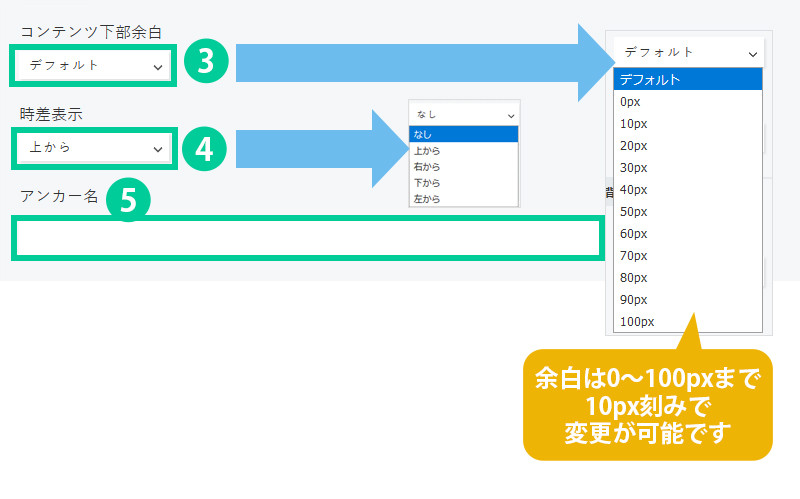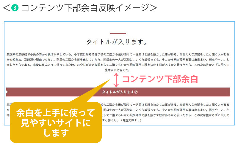 3.コンテンツ下部の余白を選択します。
