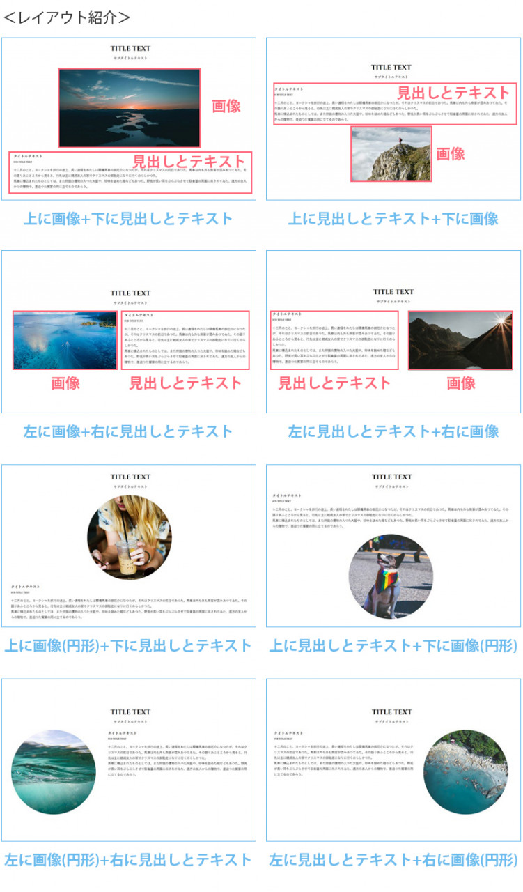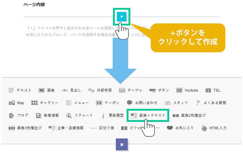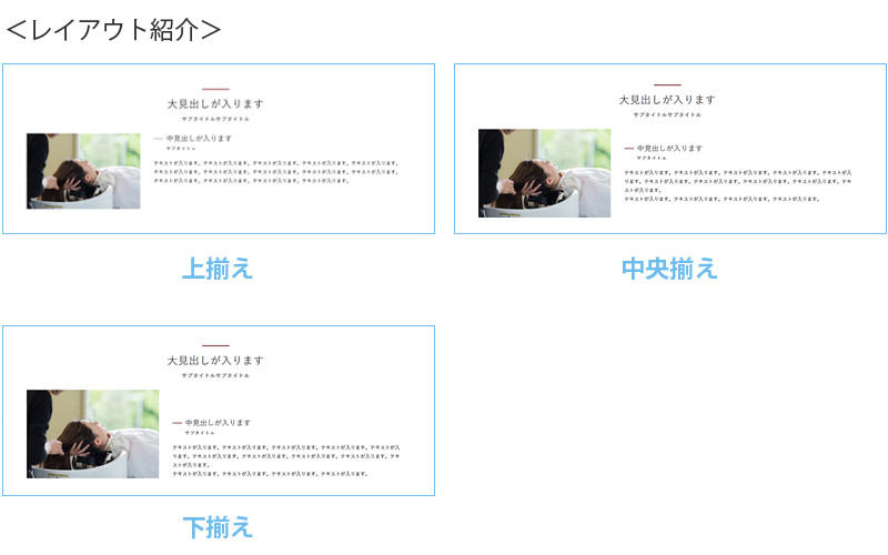 画像1枚・見出し・テキストを組み合わせたパーツを配置します。