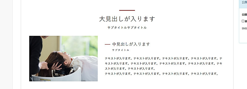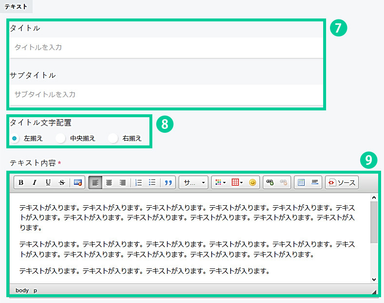 1.コンテンツ内容を設定します。 タイトル・サブタイトル(大見出し)の設定が出来ます。