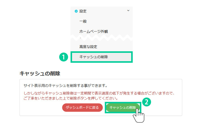 2. 「キャッシュの削除」をクリックします。