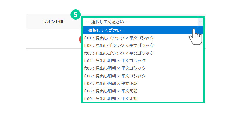5.フォント種を選択します。 見出しと平文のフォントを統一したり、見出しだけ明朝体にすることができます。