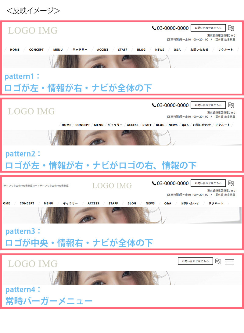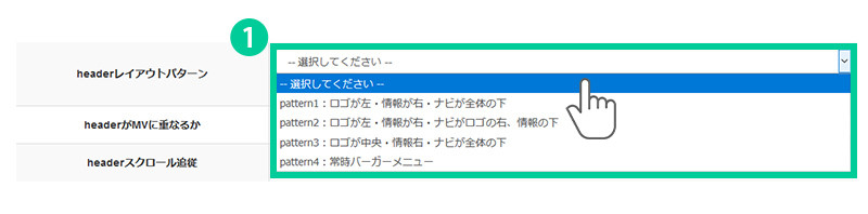 1. headerレイアウトパターンを選択します。4種類から選択できます。