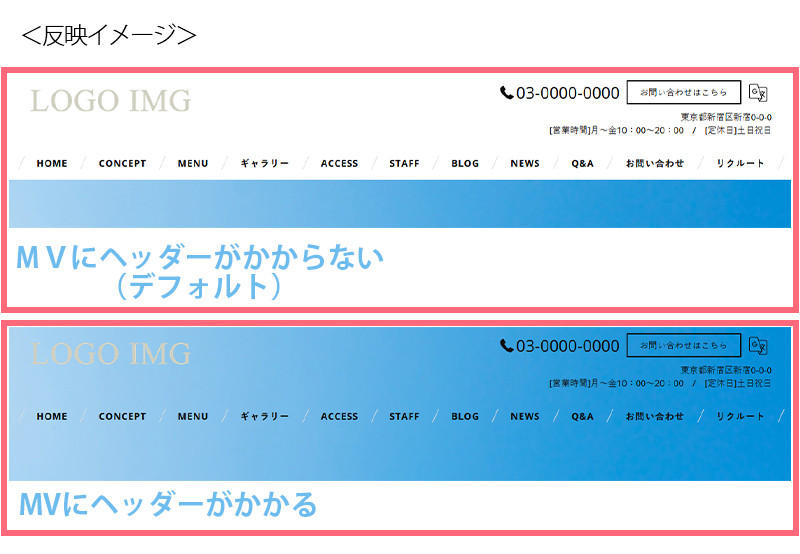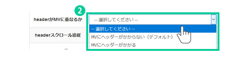 2.headerがMVに重なるか選択します。 MVとはページのメイン画像です。